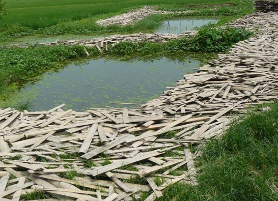 albert L. (punkt) Bambus-Schüsseln werden auf traditionelle Weise in Handarbeit aus Bambus-Stämmen hergestellt. Damit aus einem runden Stamm eine Bambusschüssel wird, bedarf es viel Zeit und Können. Bevor der Bambus verarbeitet werden kann, muss er über mehrere Monate im Wasser lagern. Dazu werden die Stämme zerteilt und geviertelt. Nach dem Durchtrocknen werden diese Bambusstücke in schmale Kannthölzer gespalten. Diese werden wiederum in dünne Streifen geteilt. Jeder Streifen wird zugeschnitten und in einer Walze gepresst.